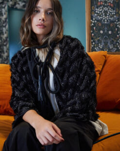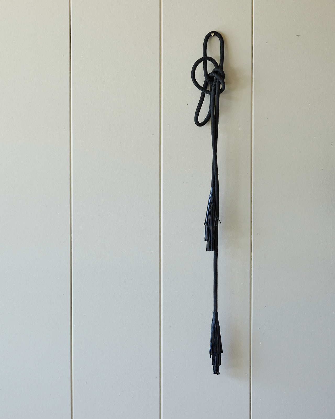 Cinturón circular cordón con alma de 1,5cm de grosor. Terminaciones con flecos de cuero.