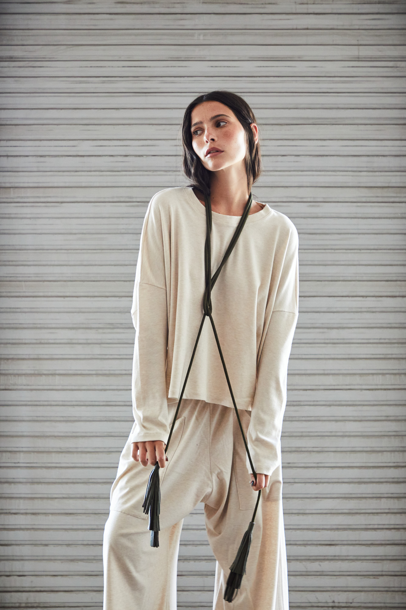 Cinturón circular cordón con alma de 1,4cm de grosor. Terminaciones con flecos de cuero.