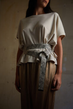 Cinturón plano de algodón con acabado sublimado print. Terminado con hebilla circular en cordón con alma de 2cm.