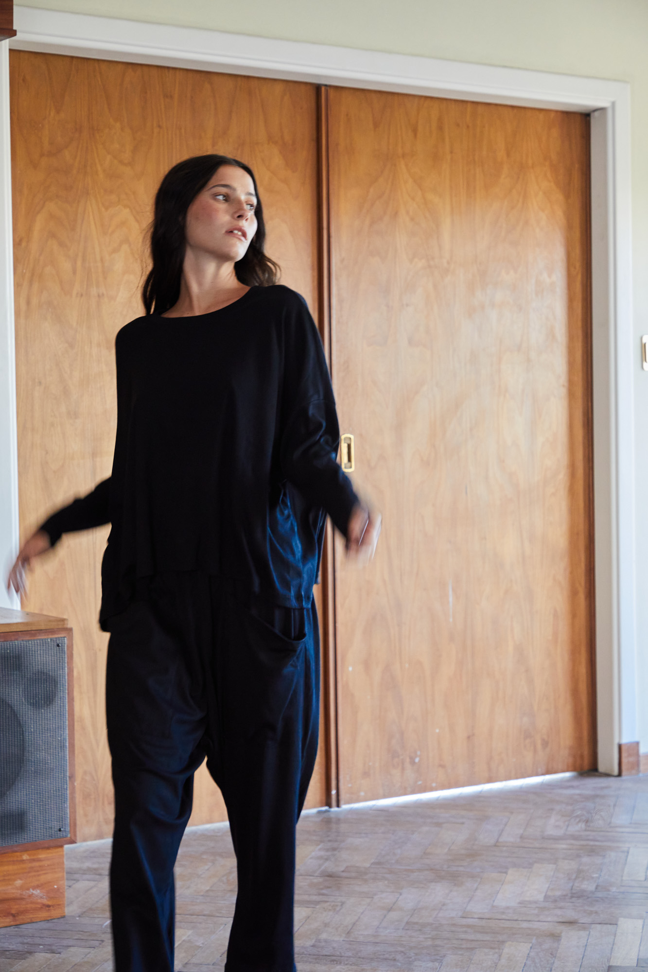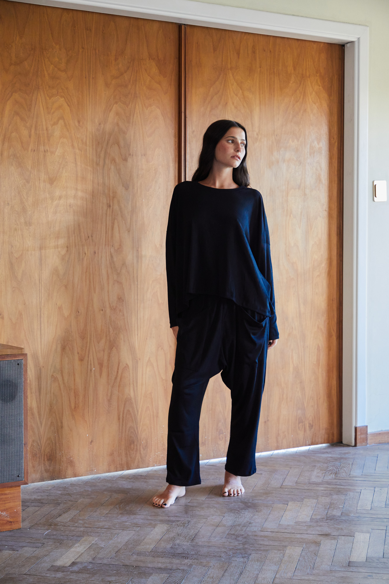 Pantalón cigarette confeccionado en hilatura de algodón 100%. Tiro largo y cintura con elástico ajustable. Bolsillos plaqué en delantero.